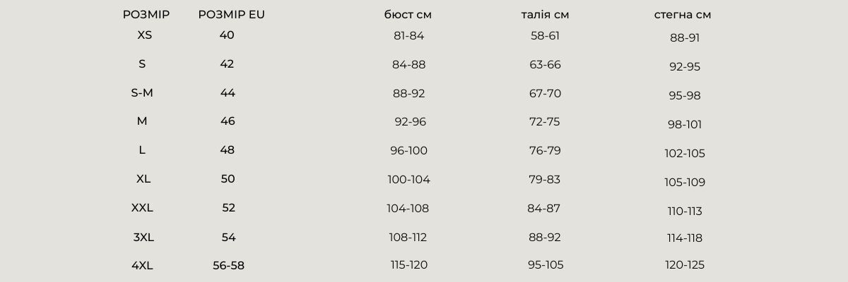 РОЗМІРНА СІТКА